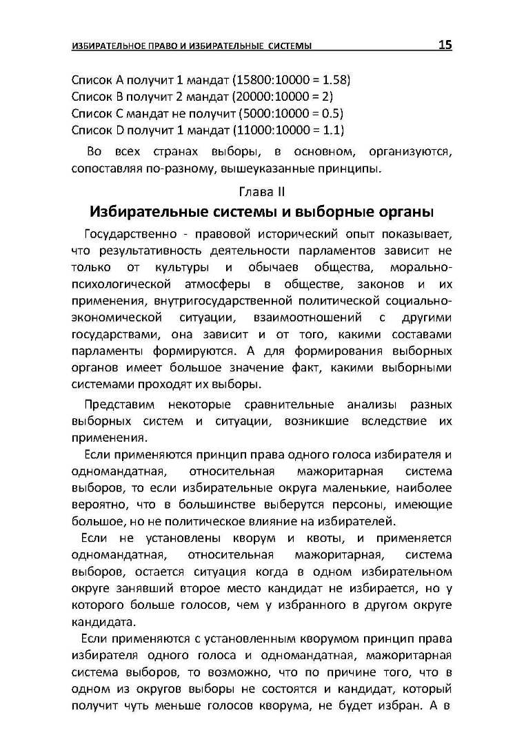 Государственно - правовой исторический опыт показывает, что результативность деятельности парламентов зависит не только от культуры и обычаев общества, морально-психологической атмосферы в обществе, законов и их применения, внутригосударственной политической социально-экономической ситуации, взаимоотношений с другими государствами, она зависит и от того, какими составами парламенты формируются. А для формирования выборных органов имеет большое значение факт, какими выборными системами проходят их выборы.