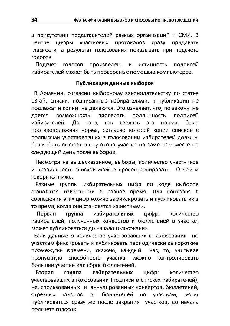 В Армении, согласно выборному законодательству по статье 13-ой, списки, подписанные избирателями, к публикации не подлежат и копии не делаются. Это означает, что, по закону не дается возможность проверять подлинность подписей избирателей. До того, как ввелась это норма, была противоположная норма, согласно которой копии списков с подписями участвовавших в голосовании избирателей должны были быть выставлены у входа участка на заметном месте на следующий день после выборов.